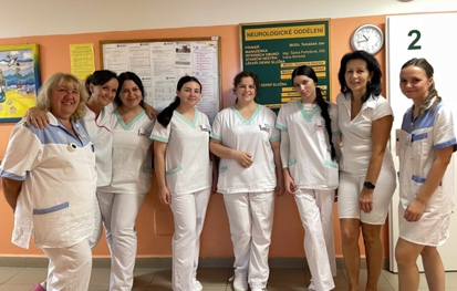 Počas pracovných dní sa žiačky stali súčasťou zdravotníckeho personálu na viacerých oddeleniach nemocnice - vyskúšali si prácu na LDN A/B (Léčebna dlouhodobě nemocných), DIOP (Dlouhodobá ošetřovatelská intenzivní péče), LDN - R (Léčebna dlouhodobě nemocných - rehabilitace) a LDN - N (Léčebna dlouhodobě nemocných - neurologie), na ktorých sa učili pracovať s novým materiálno-technickým vybavením izieb, vyskúšali si inovačné metódy starostlivosti o pacientov a oboznamovali sa so systémom práce na príslušných oddeleniach i spôsobom práce s dokumentáciou. Žiačky si tak okrem iného mohli porovnať aj kompetencie praktickej sestry na Slovensku a v Čechách a absolvovali rôzne exkurzie, ktoré si pre nich pripravili zamestnanci Chrudimské nemocnice. Po pracovnej dobe spoznávali mesto Chrudim a počas voľných dní navštívili blízke Pardubice a Prahu, kde sa zoznámili s českou kultúrou, národným jedlom i miestnymi svetoznámymi pamiatkami. Po dvoch týždňoch sa žiačky vrátili nadšené, obohatené a ešte viac motivované pre prácu zdravotníckych pracovníkov. Aj preto chceme poďakovať Chrudimské nemocnici za dlhodobú spoluprácu a čas, ktorý venujú našim žiakom. Tešíme sa na ďalšiu krátkodobú vzdelávaciu mobilitu, ktorá sa uskutoční už v júni 2026. Mobilita žiakov nebola jediná, ktorá sa začiatkom školského roka uskutočnila, pretože dve odborné vyučujúce absolvovali mobilitu pre zamestnancov - Základní kurz Bazální stimulace, ktorý osobne viedla riaditeľka INSTITUTU Bazální stimulace PhDr. Karolína Maloň Friedlová, PhD., ktorá je zároveň zakladateľkou konceptu bazálnej stimulácie v Čechách a na Slovensku. Vzdelávací program prebiehal v dňoch 2.10. - 3.10.2025 a českom meste Frýdek-Místek. Lektorka predviedla techniku konceptu bazálnej stimulácie, účastníci sa učili podporovať vnímanie, pohyb a komunikáciu ľudí prostredníctvom rôznych zmyslových a dotykových podnetov. Tým, že si to účastníci skúšali prakticky sami na sebe, išlo o zážitkový typ vzdelávania. Nadobudnuté poznatky vyučujúce sprostredkujú žiakom a učiteľom počas seminárov v priestoroch Strednej zdravotníckej školy. (SZŠ)
